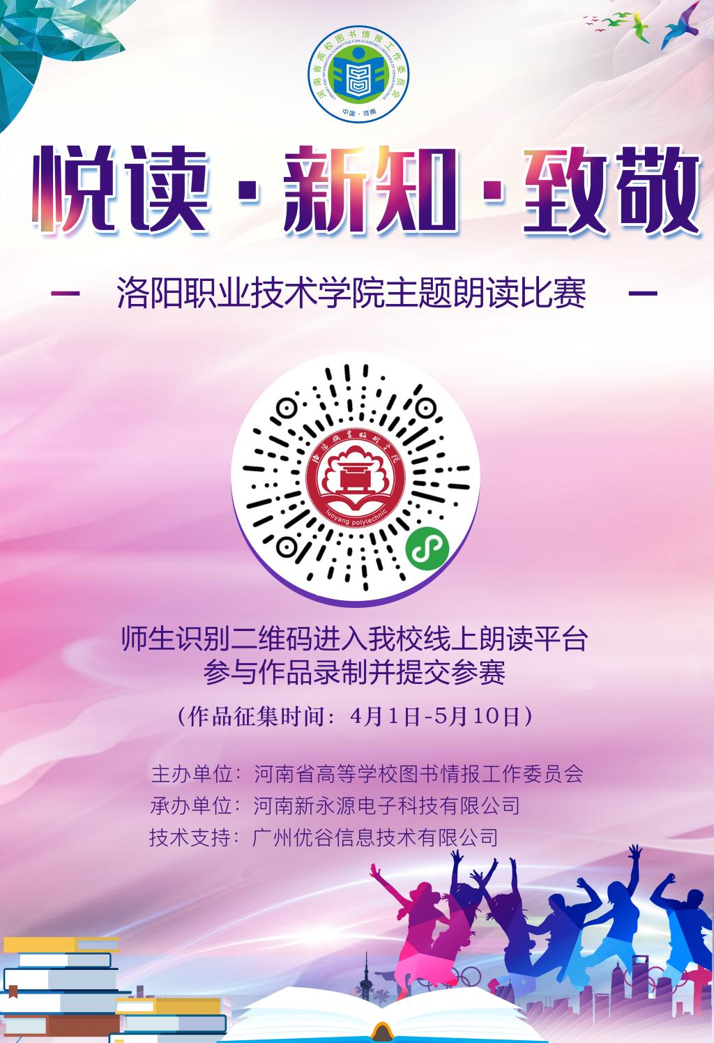 2020年伊始,一场突如其来的新冠肺炎疫情席卷了华夏大地,中华儿女万众一心,众志成城抗击疫情,我们每天都被震撼着、感动着、温暖着、激励着。我院图书馆创新服务形式,为读者提供丰富的线上阅读资源,实现闭馆不闭网、服务不打烊。为充分发挥图书馆在传承文明、培育文化自信中的独特作用,激发青年学生的文化使命担当,河南省高等学校图书情报工作委员在4月23日第25个“世界图书和版权日”(又称世界读书日)到来之际,联合河南省各高校图书馆特举办“悦读·新知·致敬”主题朗读比赛。