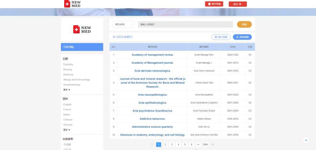 新知医学是专业的外文医学文献发现平台。包含全部MEDLINE收录期刊,涵盖基础医学,临床医学的专业期刊,同时还拥有牙科医学以及护理学等学科期刊。该平台资源量大,文献超过3000万条,期刊超过35000种。