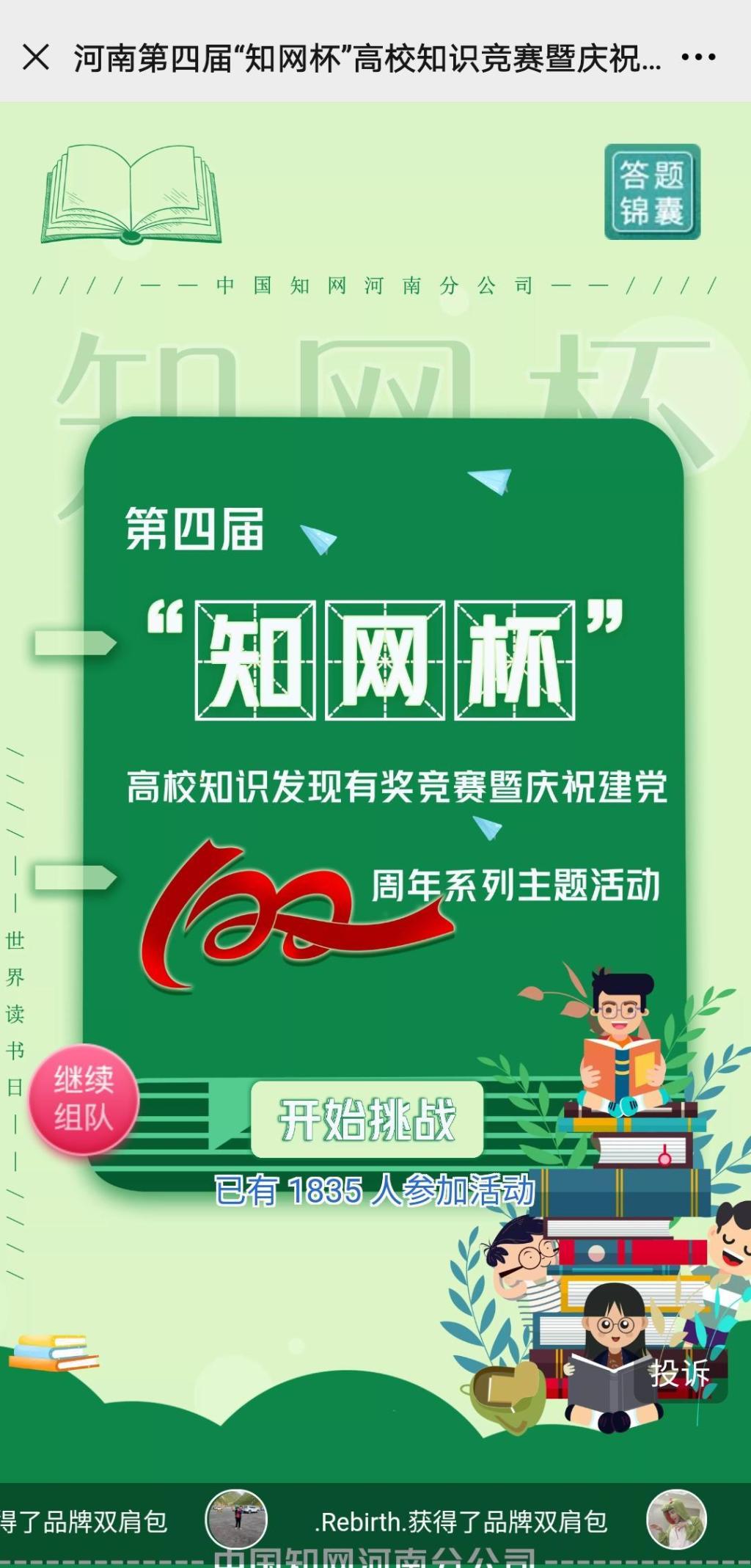 活动名称:河南第四届“知网杯”高校知识发现有奖竞赛暨庆祝建党100周年系列主题活动
