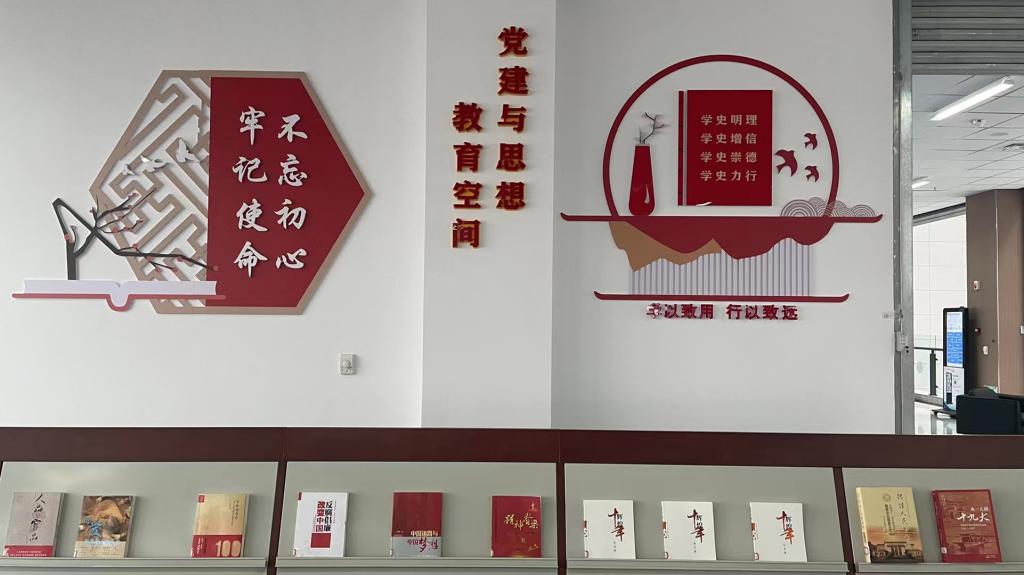 今年是中国共产党成立一百周年,为深入开展党史学习教育,激发广大师生爱党爱国热情,增强民族自豪感与自信心,我校在图书馆三楼打造党建与思想教育空间,推动师生做到“学史明理、学史增信、学史崇德、学史力行”。