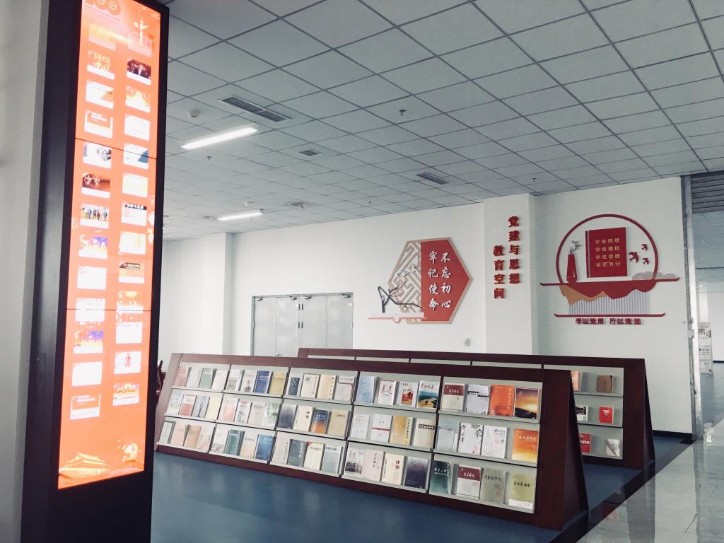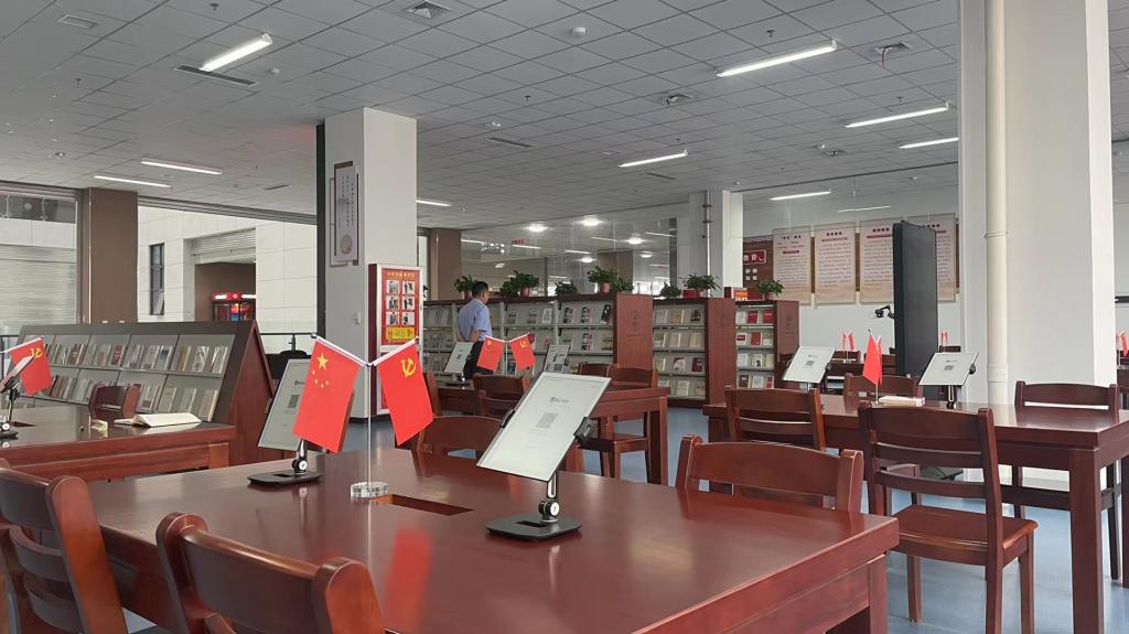 数字阅读体验区配置了水墨屏、瀑布流、电子图书阅读机等现代化设备,提供海量的线上党建及思政教育电子图书和数据库资源。