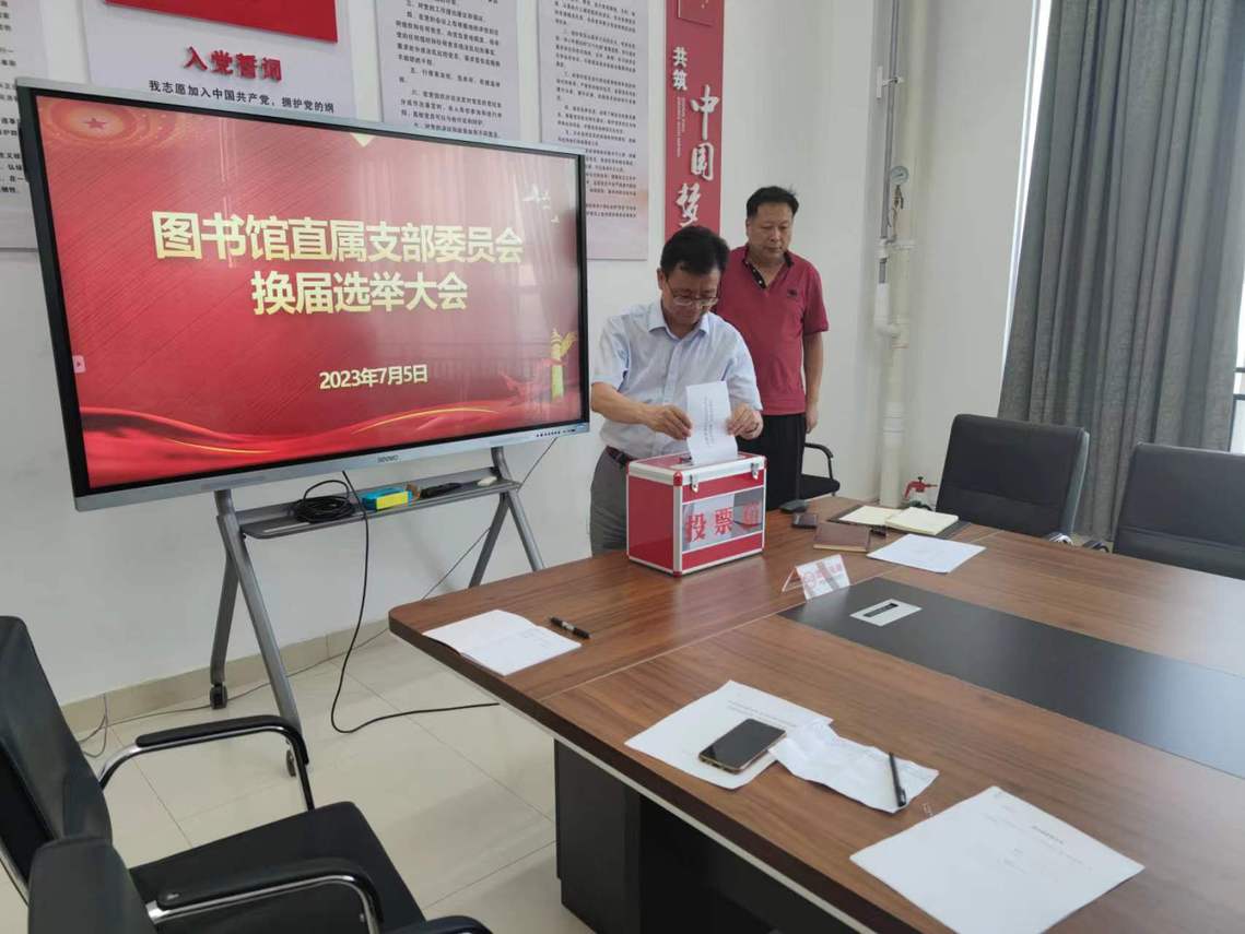 为深入学习贯彻习近平新时代中国特色社会主义思想和党的二十大精神,优化党组织成员结构,充分发挥党组织的战斗堡垒和党员的先锋模范作用,根据《中国共产党章程》、《中国共产党基层组织选举工作条例》等有关规定,经校党委批准,7月5日下午,图书馆直属支部委员会召开支部换届选举党员大会,进行党支部换届选举工作。