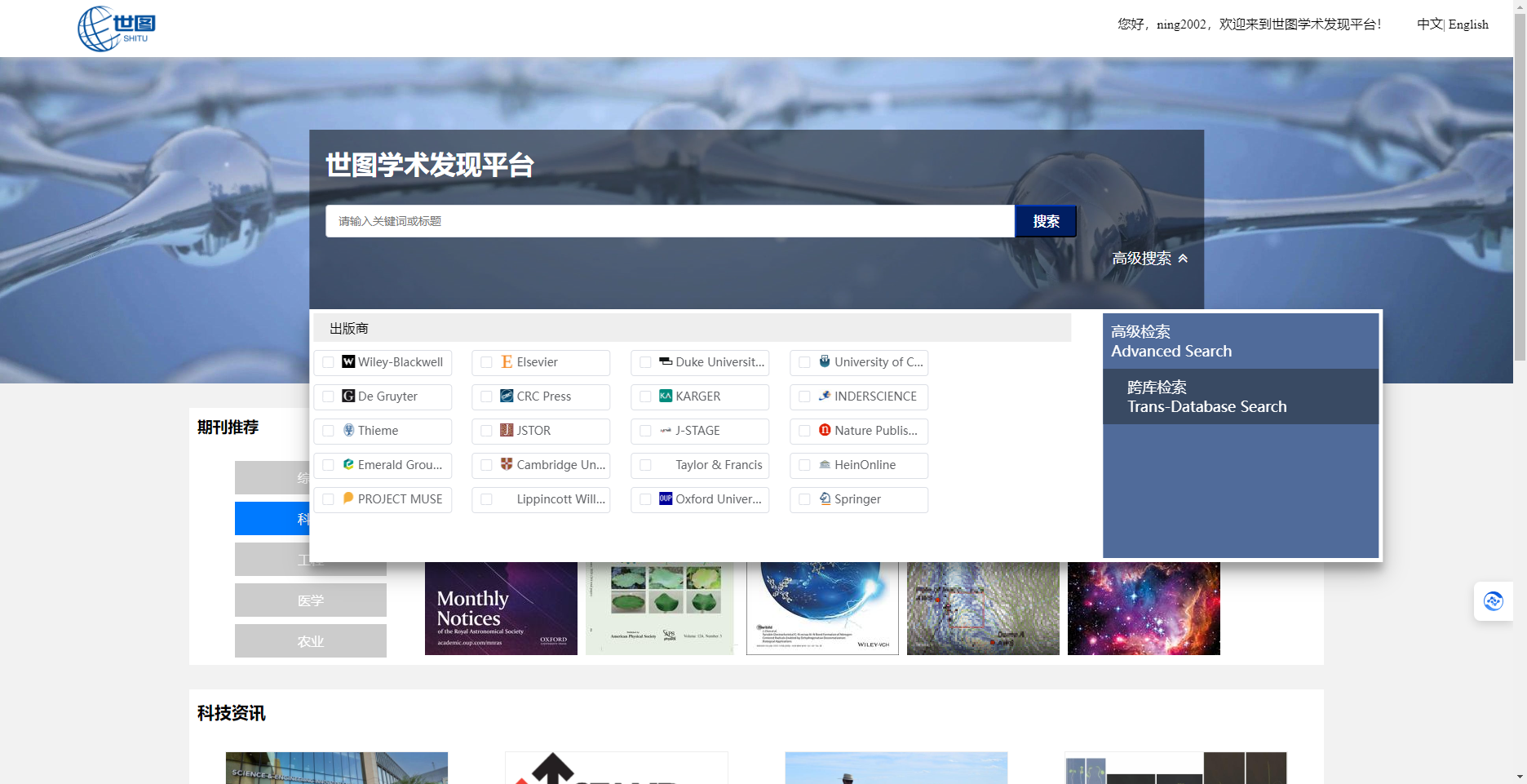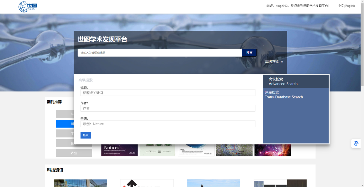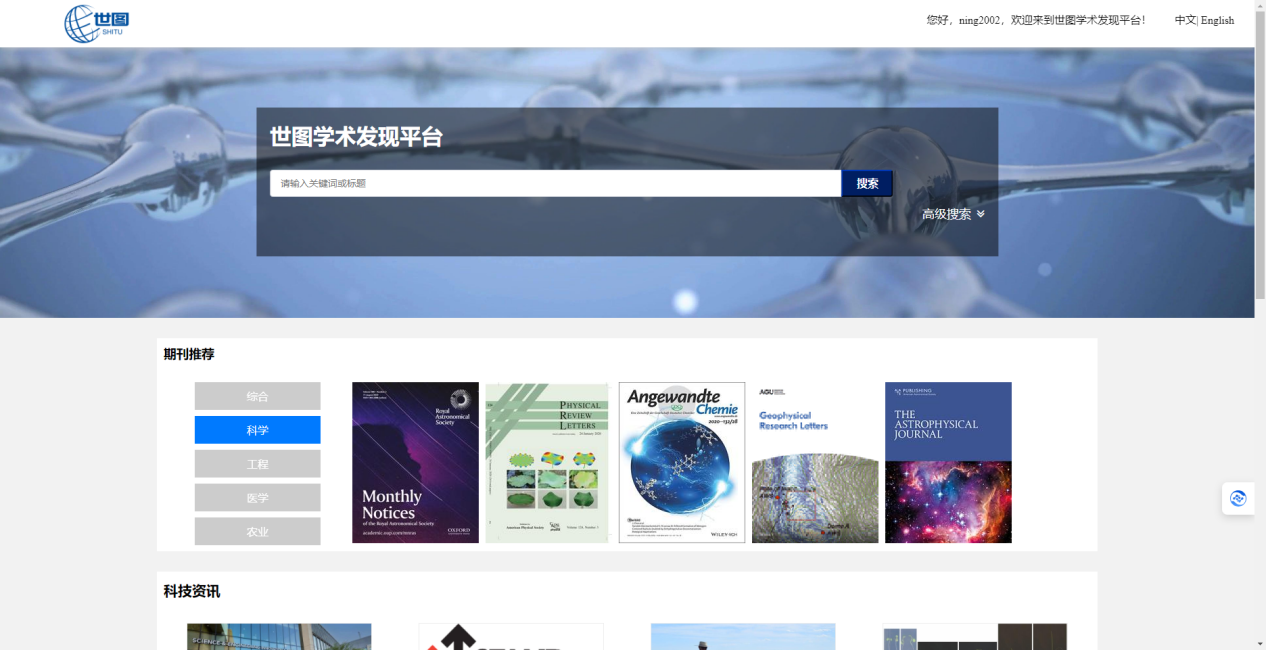 该平台是世图公司利用自身研发的海量元数据仓储平台接入全球互联网学术资源,是最新一代学术资源发现与获取平台,致力于为师生提供更方便、更便捷的“一站式”检索服务,轻松搜索全球互联网学术资源。界面更简单,内容更丰富,获取全文更便捷。